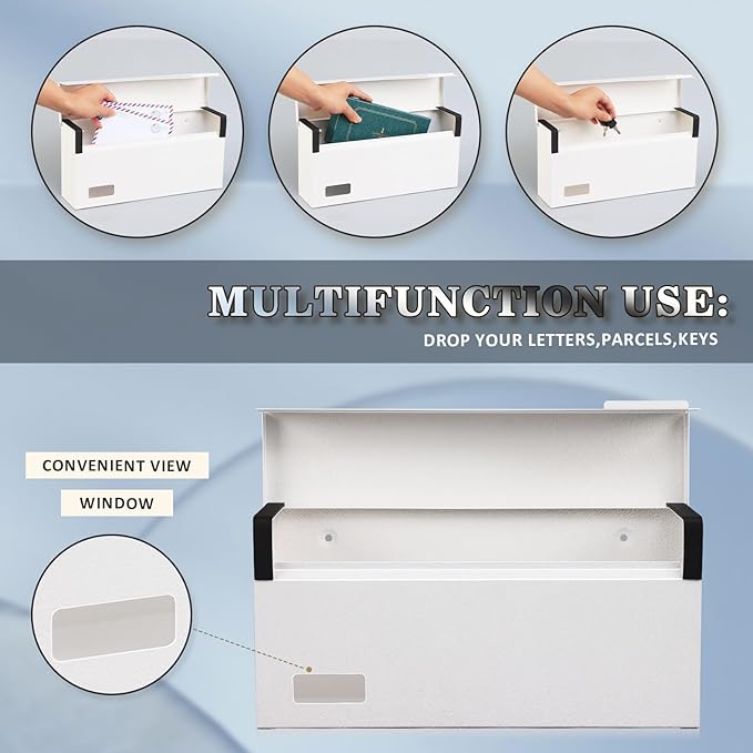 - 【RUST-RESISTANT】The white textured surface with an excellent rustproof performance prolongs the service life of the mailbox.