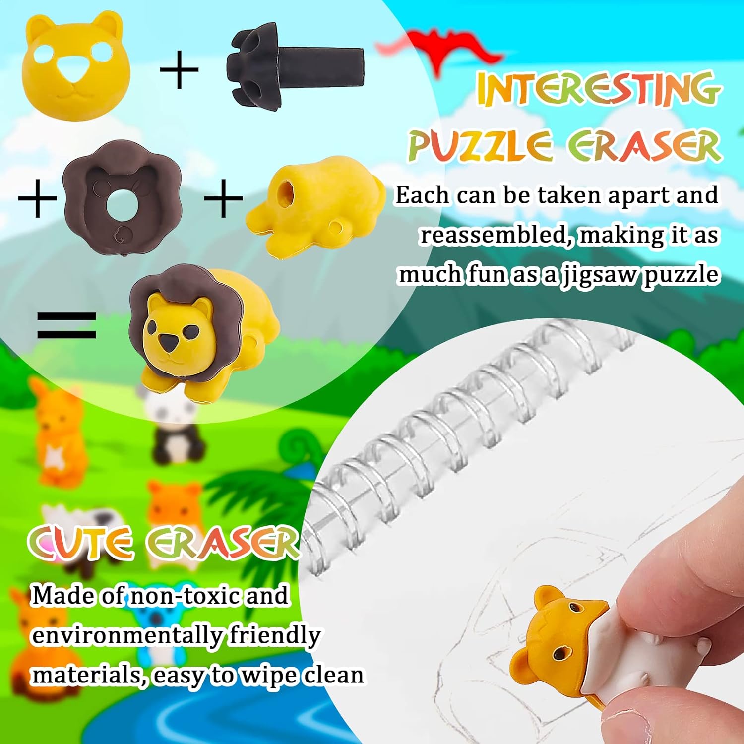 - PUZZLE PENCIL ERASERS]: Super kawaii mini animal erasers, made by non-toxic & eco-friendly latex-free material, safe for kids. Each puzzle toy approximately 1β, comes individually packed