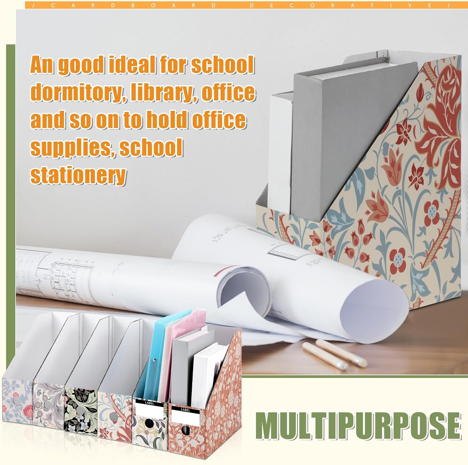 PerKoop 12 Pcs Magazine File Holder Foldable Decorative Cardboard File Folders 6 Patterns Floral Colored Magazine Rack with Printable Sticker Labels for School Office Home Desk (Floral)