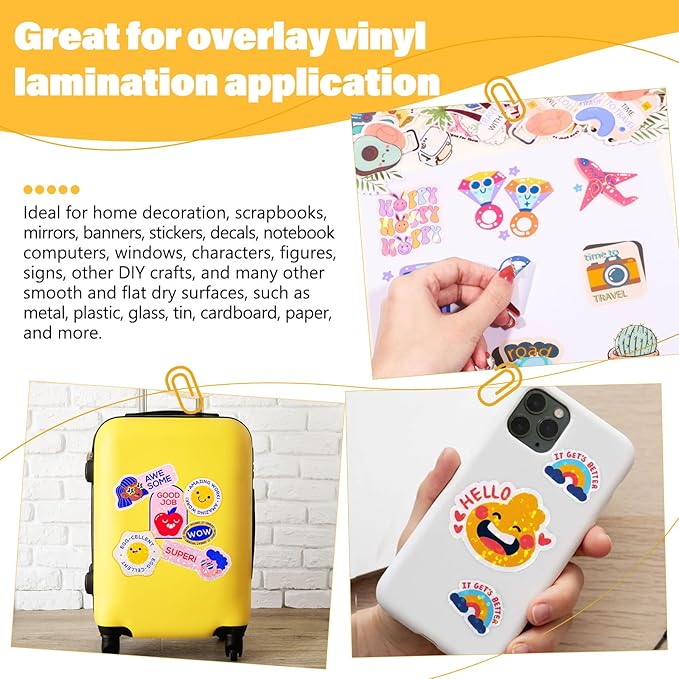 - Water-Resistant & Long-Lasting Protection - Our self adhesive laminating sheets, made from premium clear vinyl, are durable and waterproof sticker paper friendly. Great for use with self adhesive vinyl laminating sheets, these overlays provide protection against smudging and water damage, transforming your designs into waterproof stickers and waterproof sticker vinyl.