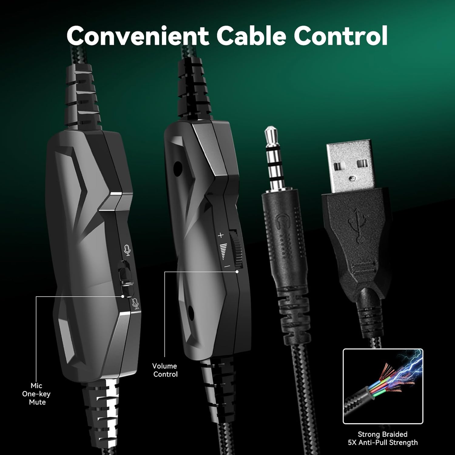 - 【Professional Gaming Headset】Gaming headphones with 6.5ft high tensile strength, anti-tangle braided cable, rotary volume control and button microphone mute.