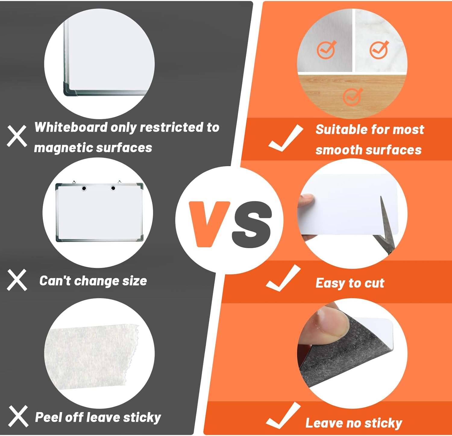 - Made: These dry erase stickers 3x5 inch have a smooth white polymer surface and premium adhesive back, easy to use; Unlike magnetic or paper labels, our dry erase sticky notes reusable can repeat stick well on most clean and flat surfaces and peel off clean, leave no sticky
