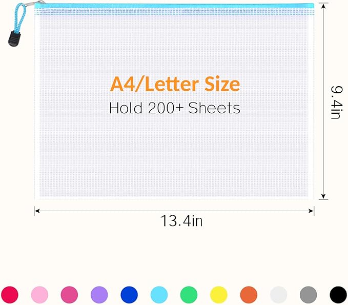 Sooez 24 Pack Mesh Zipper Pouch with Sticky Labels, A4 Mesh Bags for Board Game Puzzles Organization Storage, Durable Letter Size File Folders Organizer for Teacher School Classroom Office Supplies
