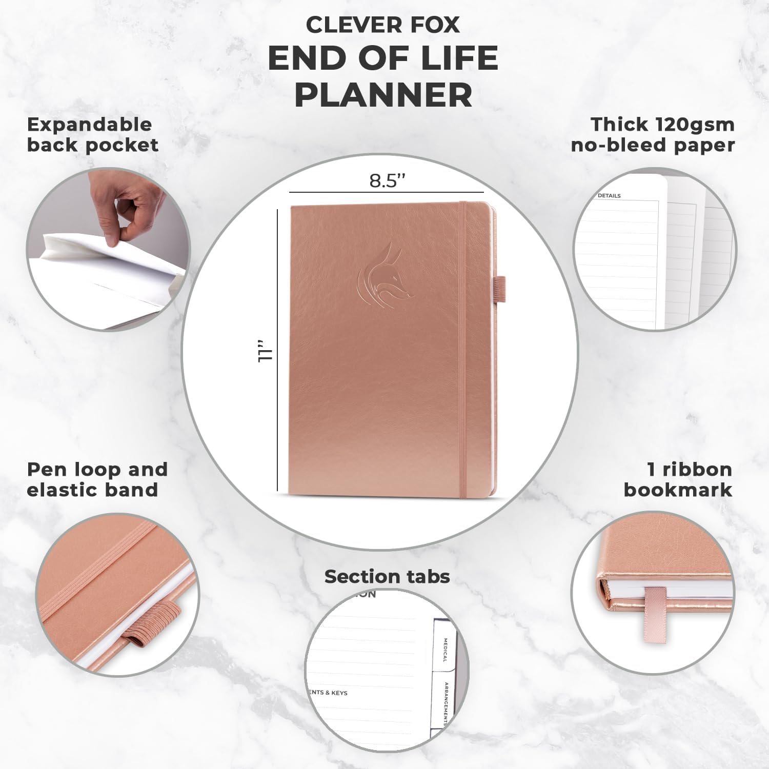 Clever Fox End of Life Planner – Final Arrangements Organizer for Beneficiary, Will Preparation, Last Wishes & Funeral Planning, A4 (Rose Gold)
