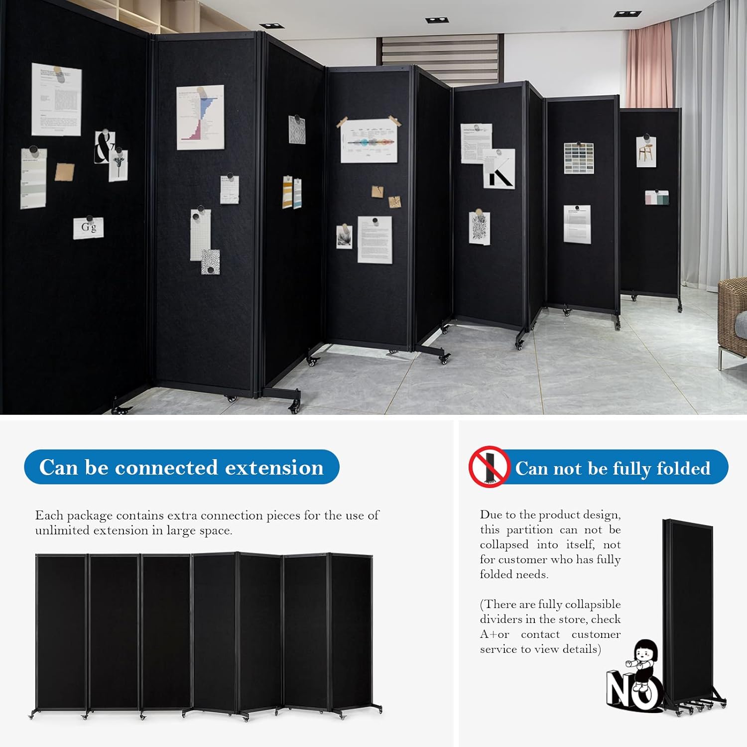 Room Partition,Office Divider,Portable Commercial Screen Dividers,Privacy Partition Separator,Classroom School Dividers, 12'7"L* 6'7"H,6 Panel,Black