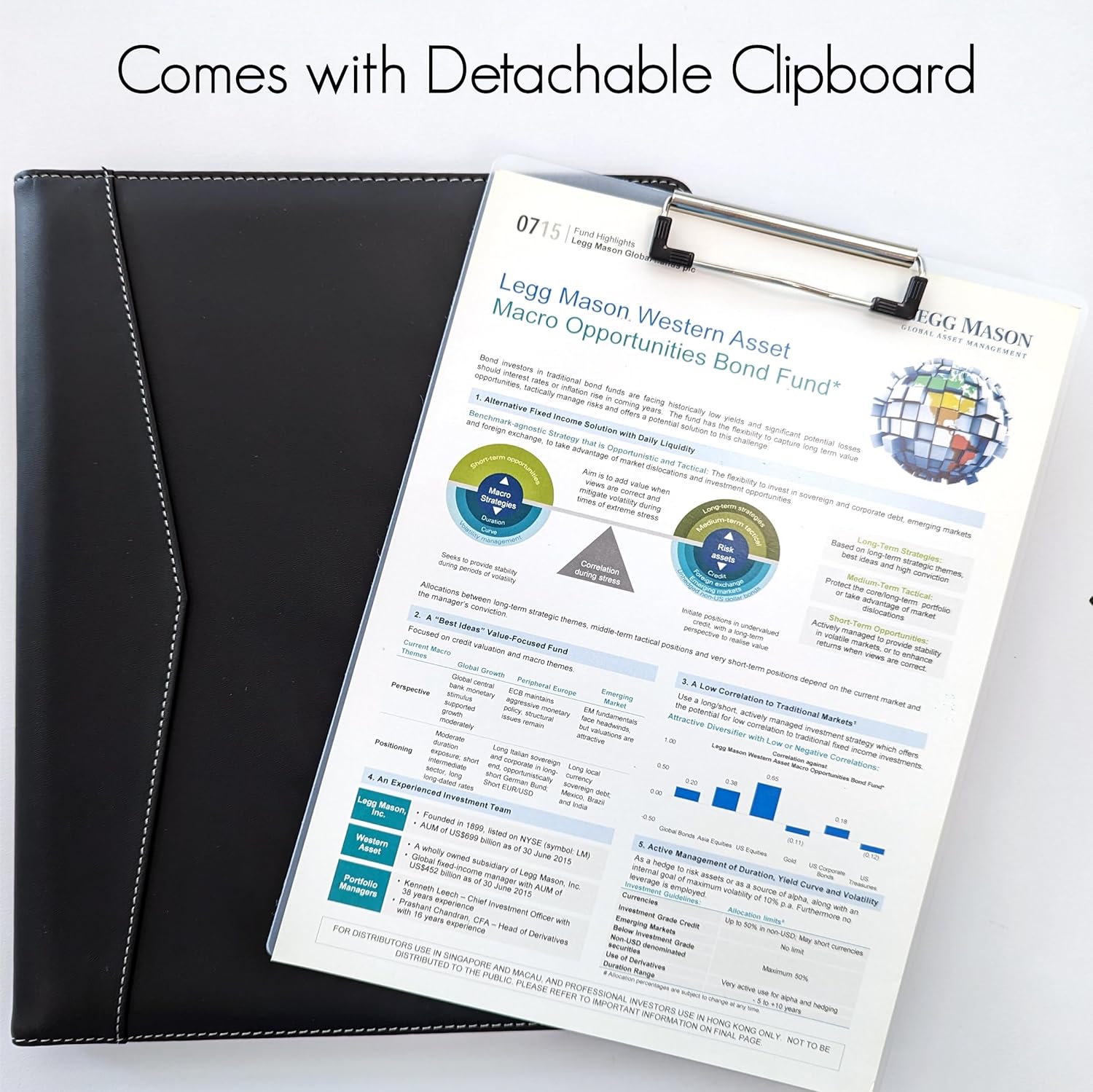 - β STYLE MEETS FUNCTION: Elegant portfolio folder featuring a removable clipboard. New slim 360 degree flip design enables you to fold the padfolio back on itself, so you can lay it flat and write flat life a conventional clipboard.