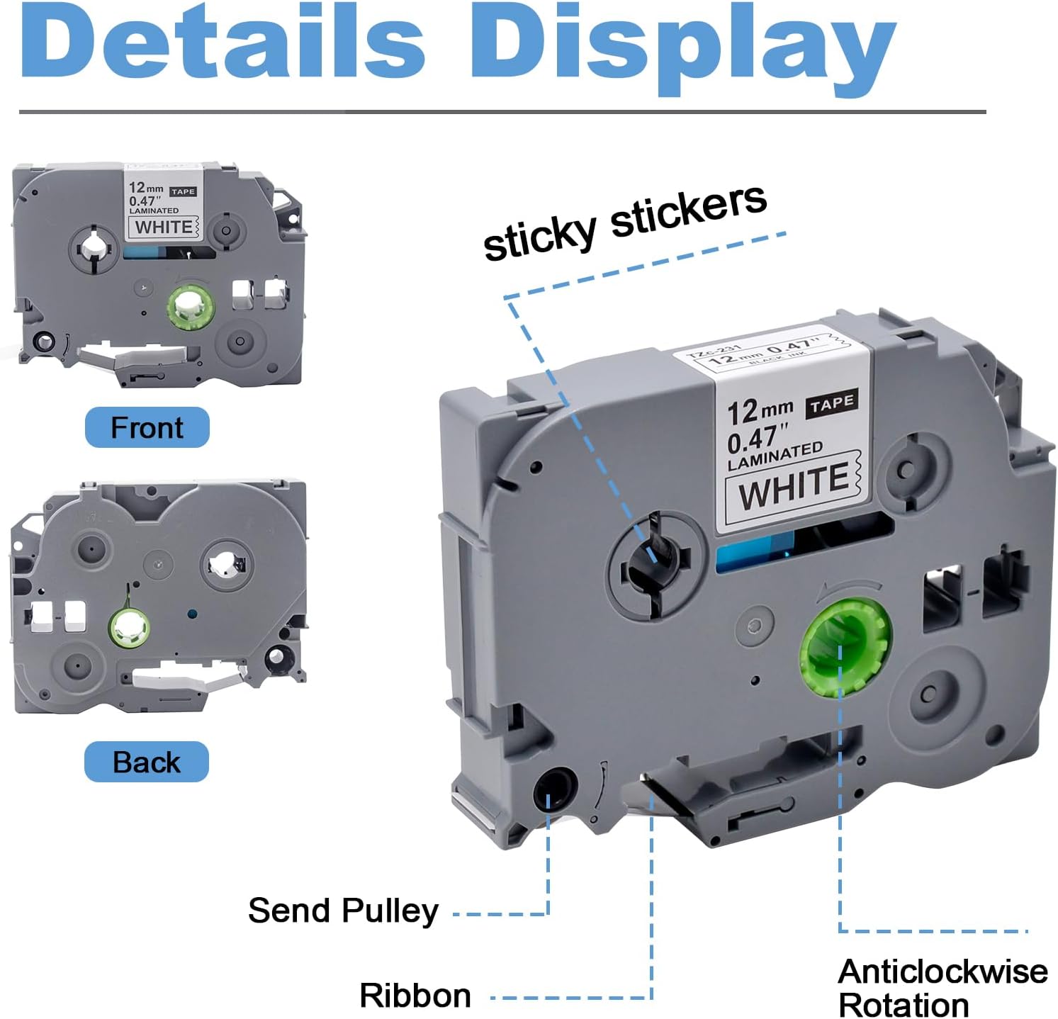 - Product Package Contents: 1xTZE-231 1xTZE-131 1xTZE-132 1xTZE-133 1xTZE-431 1xTZE-531 1xTZE-631 1xTZE-731 (12mm*8m) Totle: 8 pack