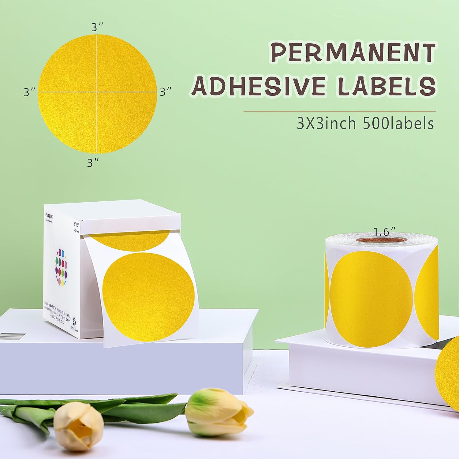 PARLAIM 3 Inch Round Color-Code Dot Stickers, 500PCS Inventory Labels Color Code Stickers Dispenser Box,Gold Circle Sticker Labels for Inventory &Family School Storage Bins Label (Gold)