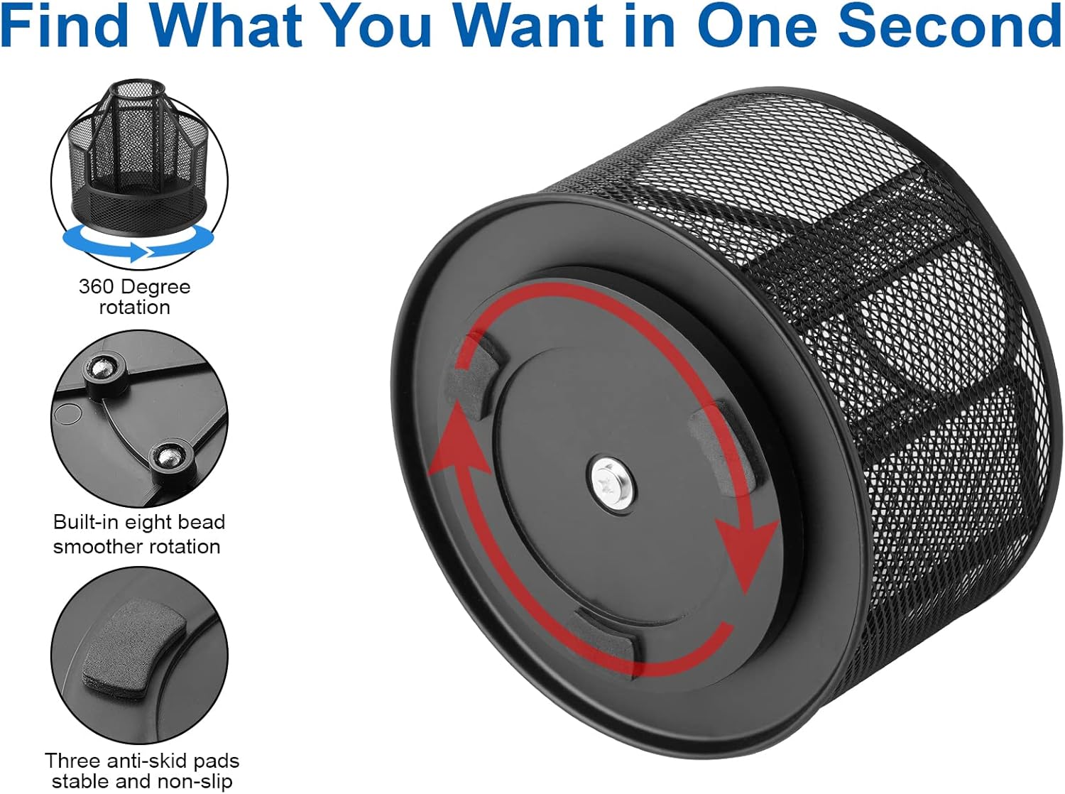 - βγStable 360 Degree Rotating Designγ This rotating desk organizer has a 360-degree rotation of chassis with reinforced anti-skid pad, this makes it very stable and no damage to your desktop; and can rotate left and right 360 degrees very smoothly without worrying about getting stuck. You can rotate to your front at any time to access items at the easiest angle, making them more efficient and improving your work efficiency.