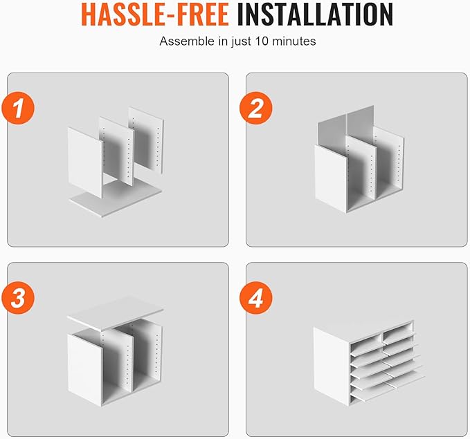 - Assemble in No Time: Our literature organizer sorter is incredibly easy to install, thanks to its simple panel design. With the included assembly instructions, you'll be guided through every step of the process, making it a breeze to complete the installation in just 10 minutes!