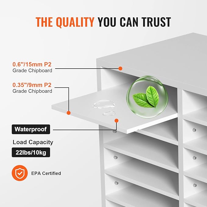 VEVOR Literature Organizers, 12 Compartments Office Mailbox with Adjustable Shelves, Wood Literature Sorter 20.4x12x16.1 inches for Office, Home, Classroom, Mailrooms Organization, EPA Certified White