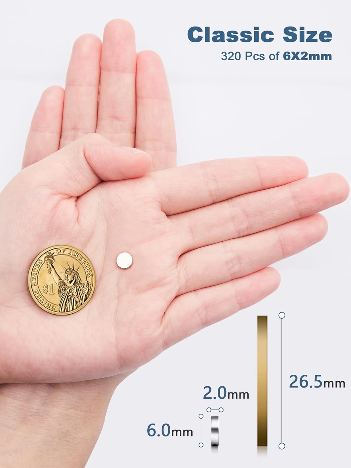 - Useful Design - Despite of its tiny size (Diameter: 6 mm, thickness: 2 mm), each magnet is able to hold at least 15pcs sticky notes. You don't have to worry it's not able to fixate the paper.