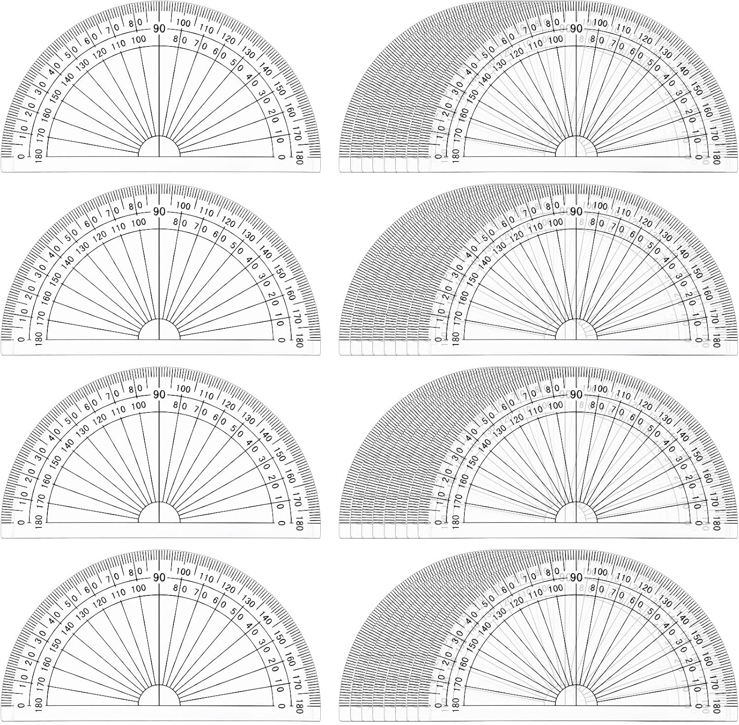 - 100 Pack Protractors: the material is plastic; The bottom side length is 10 cm, 4 inch size make it easy to put on your books, notebooks and pencil case