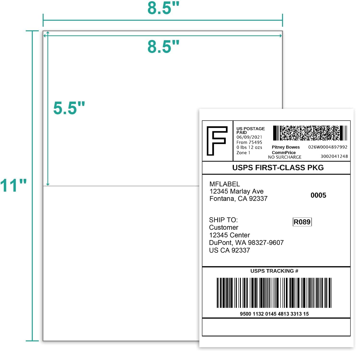 MFLABEL Half Sheet Label Laser/Ink Jet Shipping Label 8.5 x 11 Inches Packaging Labels, Address Labels for Laser & Inkjet Printers, 1500 Count(750 Sheets)
