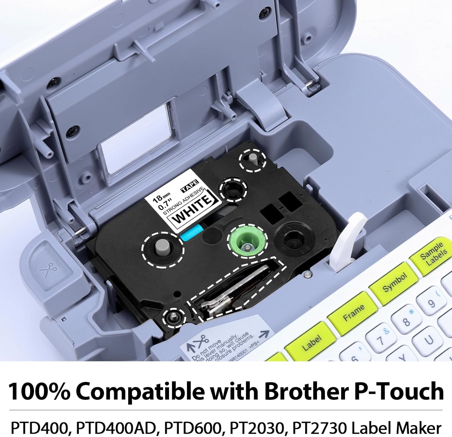 - Compatible with Brother p-touch label maker that using 18mm 3/4" extra-strength adhesive laminated tape, such as PT-D400 PT-D600 PT-D410 PTD400AD PT-D610BT PT-P900W PT-P950NW PT-P700 PTD600VP PT-P750W PT-P710BT PT1700 PT1750 PT1880 PT1890 PT1900 PT2040 PT2300 PT2700 PT2730, etc.