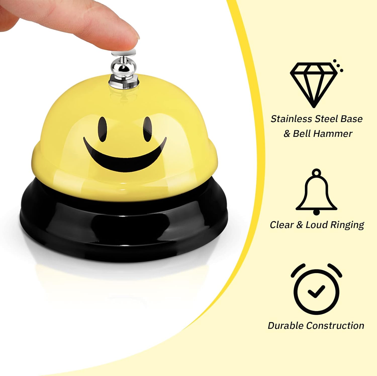 - Cute and Classic: our desk bell comes with the appearance of smile face, in line with most people's aesthetic, look delicate and beautiful, its voice was very clear and loud, and is suitable for most people to use