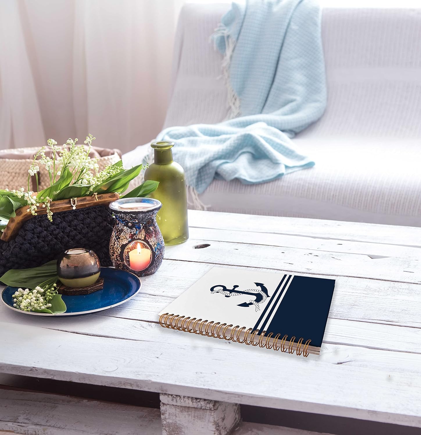 Navy Nautical Anchor Rope Ship Steering Wheel Lined Spiral Journal Notebook 8.3×5.5 Inches Hardcover College Ruled Notebook for Work Note Taking Journaling,Ocean Lover Gifts,Sailor Gifts