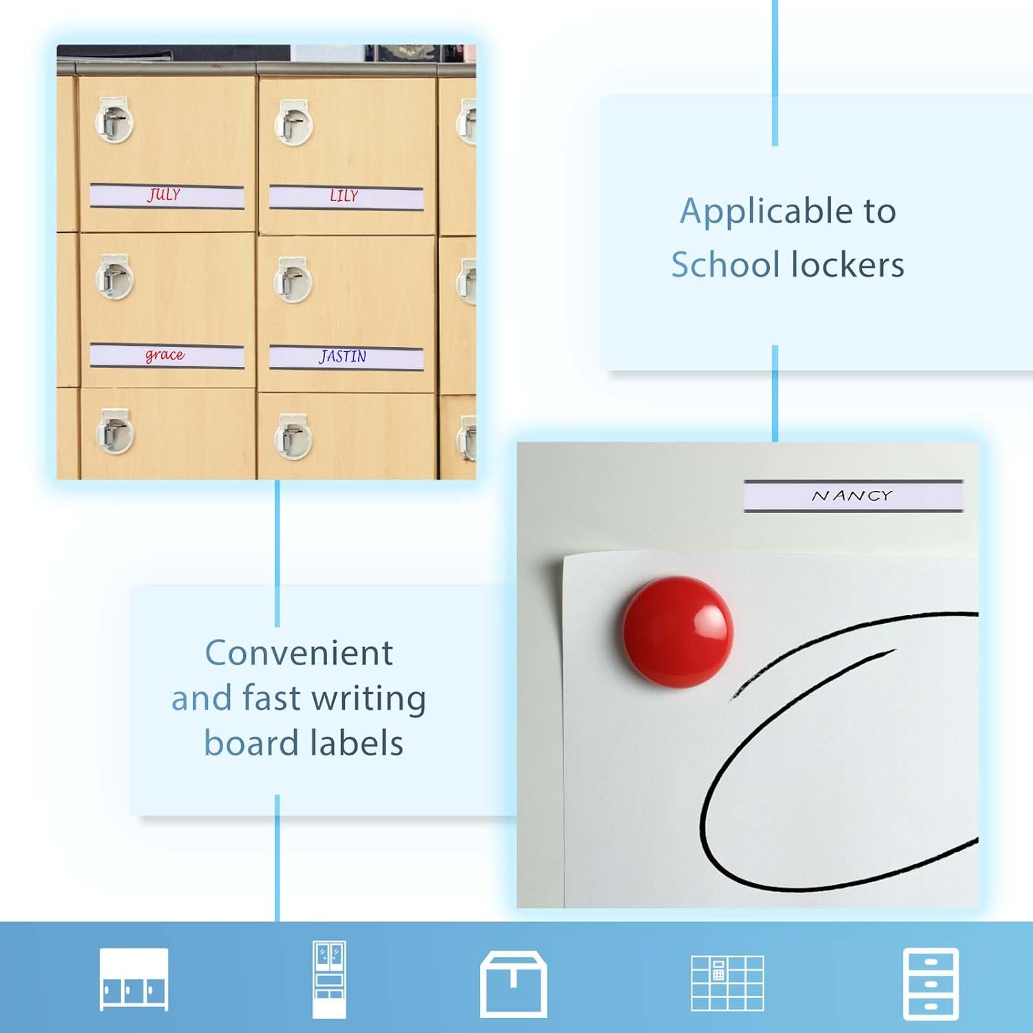 - Easy to use: write on the included paper strip, slide in the paper insert and the transparent protective film, stick the magnetic label holder to clean and flat surface, saving time and making reposition easier compared with traditional adhesive labels