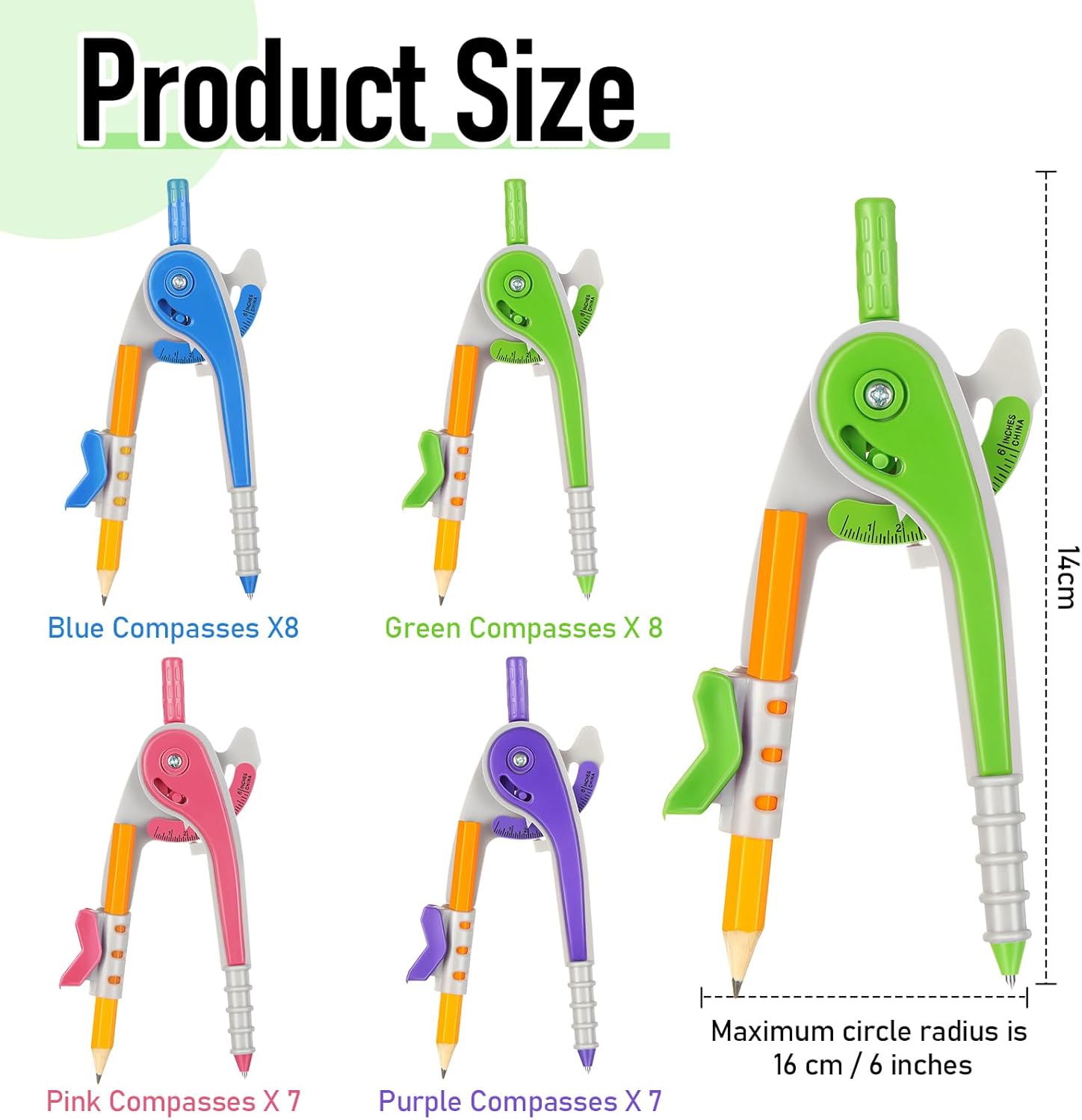 - 30 Compasses Included: you will receive 30 pieces of geometry compasses including 4 different colors, namely pink, purple, green and blue, each compass is equipped with a detachable pencil for drawing; Sufficient quantity and bright colors make them ideal for school districts and teachers who need multiple compasses for their students