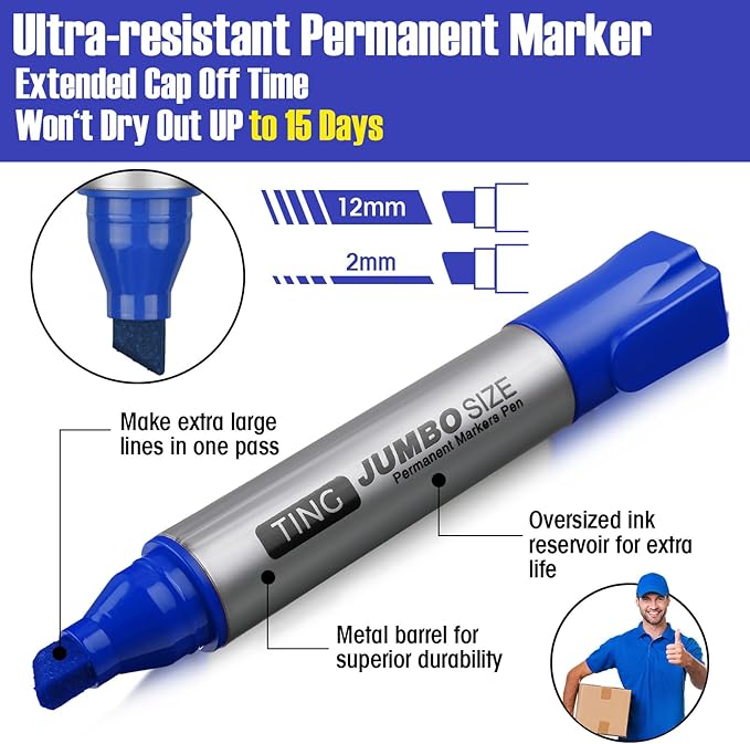 - Quick Drying and Waterproof: these jumbo markers are designed to dry fast, so you don't have to worry about smudging or running ink, they are also waterproof, convenient to use on the surface outside