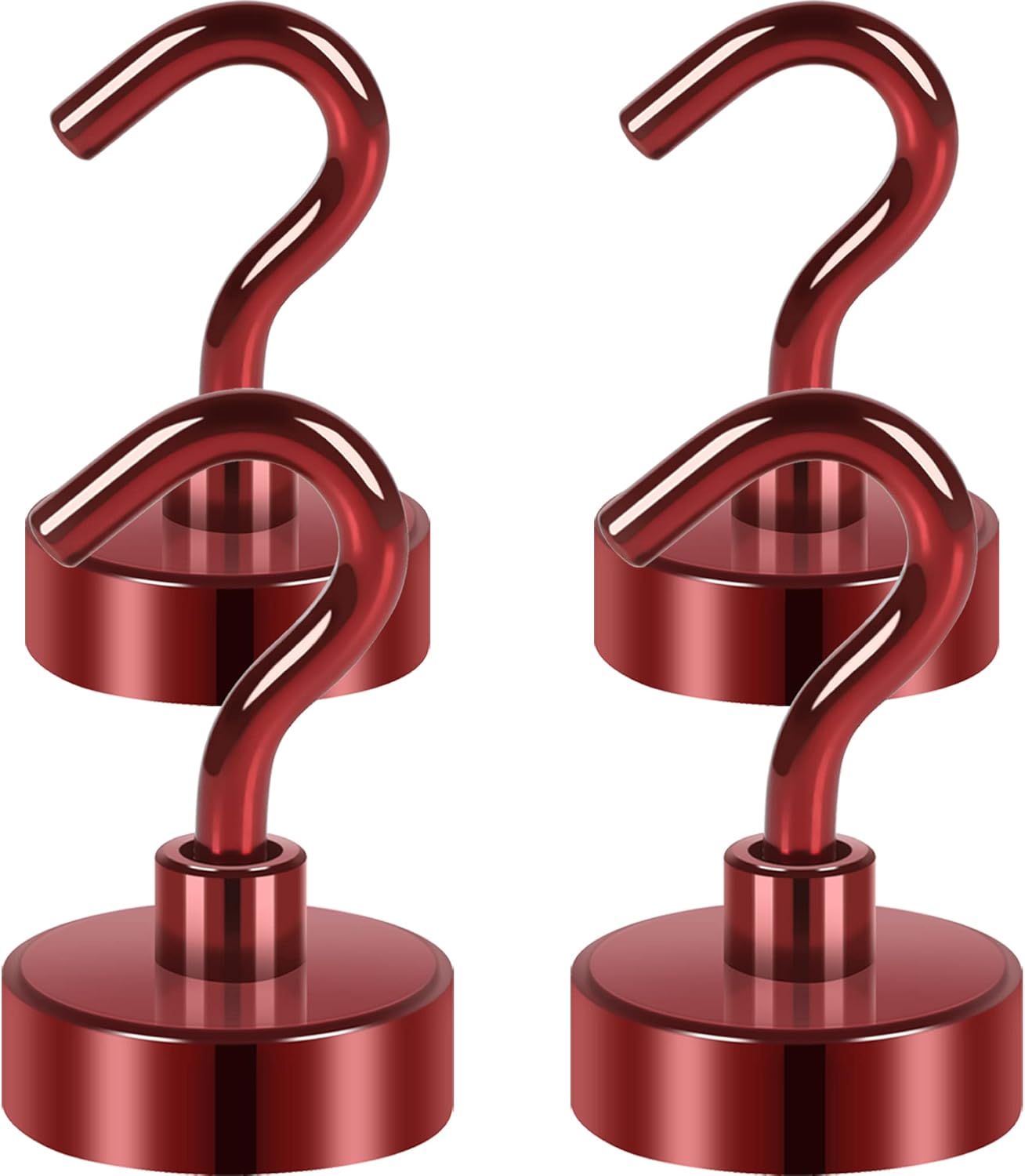 Neosmuk Magnetic Hooks,Heavy Duty Earth Magnets with Hook for Refrigerator, Extra Strong Cruise Hook for Hanging, Magnetic Hanger for Cabins, Grill (Red, Pack of 4)