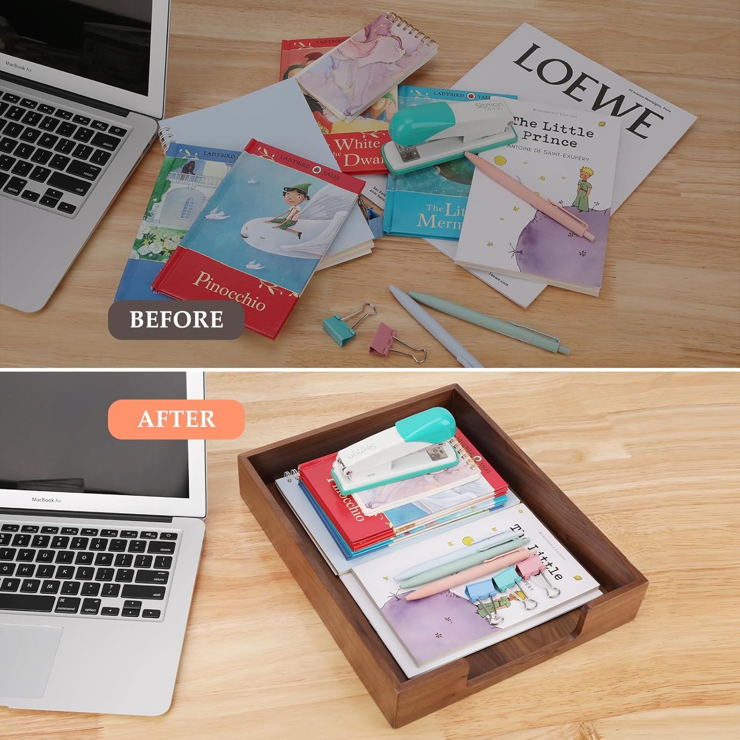 - Black Walnut Constructed: Our letter tray are handcrafted by premium black walnut wood from USA. The letter tray desk organizer boasts of top-notch polishing without any splinter compared with others in the market, and the natural wooden grains of holder are also perfectly preserved!