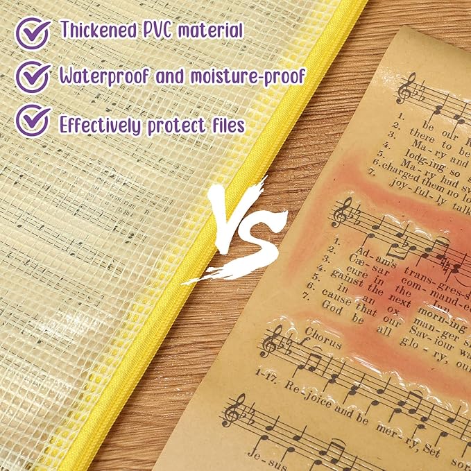 - Reliable Materials: these zippered file bags are made of waterproof PVC material, which is sturdy and tear resistant, keep your items from water spills and dirt; The metal zipper glides smoothly, which can serve you for a long time; Note: the zipper is not waterproof