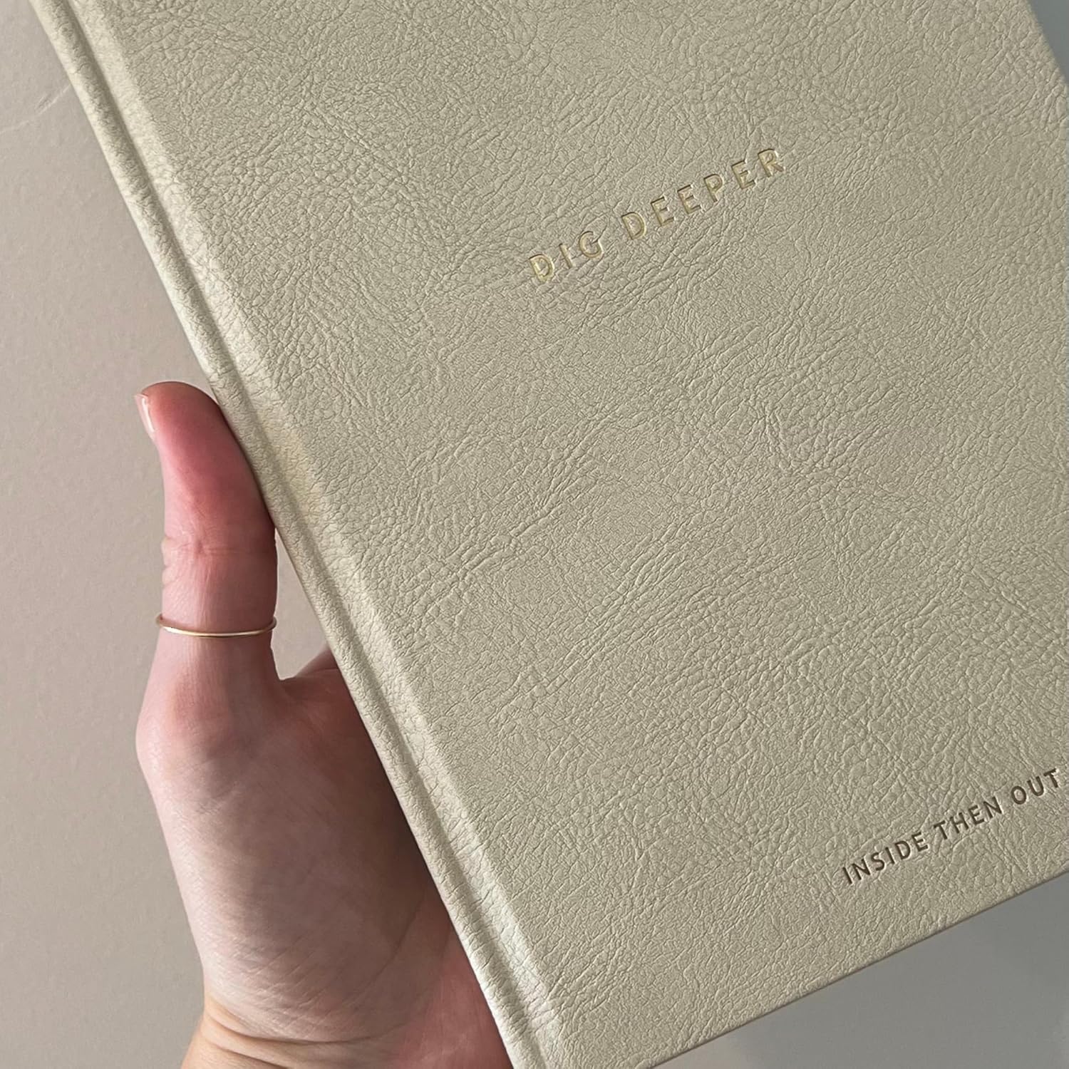 - Hardcover Journal: Features textured, vegan leather with gold detailing and a ribbon bookmark. The Dig Deeper Journal is your companion for journaling.
