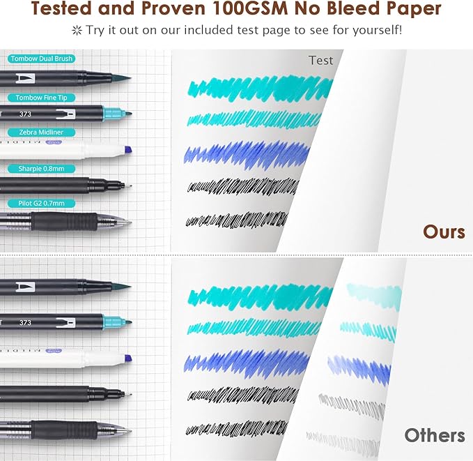 - 【Thick Paper for Writing Without Limits】Large B5 hardcover notebook (7.6"x 10"/193mm x 264mm), total 320 pages, includes 312 numbered pages(equal to 156 sheets). 5 x 5mm graph grid paper(5 squares per inch). Our INNOVATIVE PAPER TECHNOLOGY on 100GSM thick paper ensures a perfect canvas for your ideas - no bleed, no ghosting, as confirmed by tests with various pens.