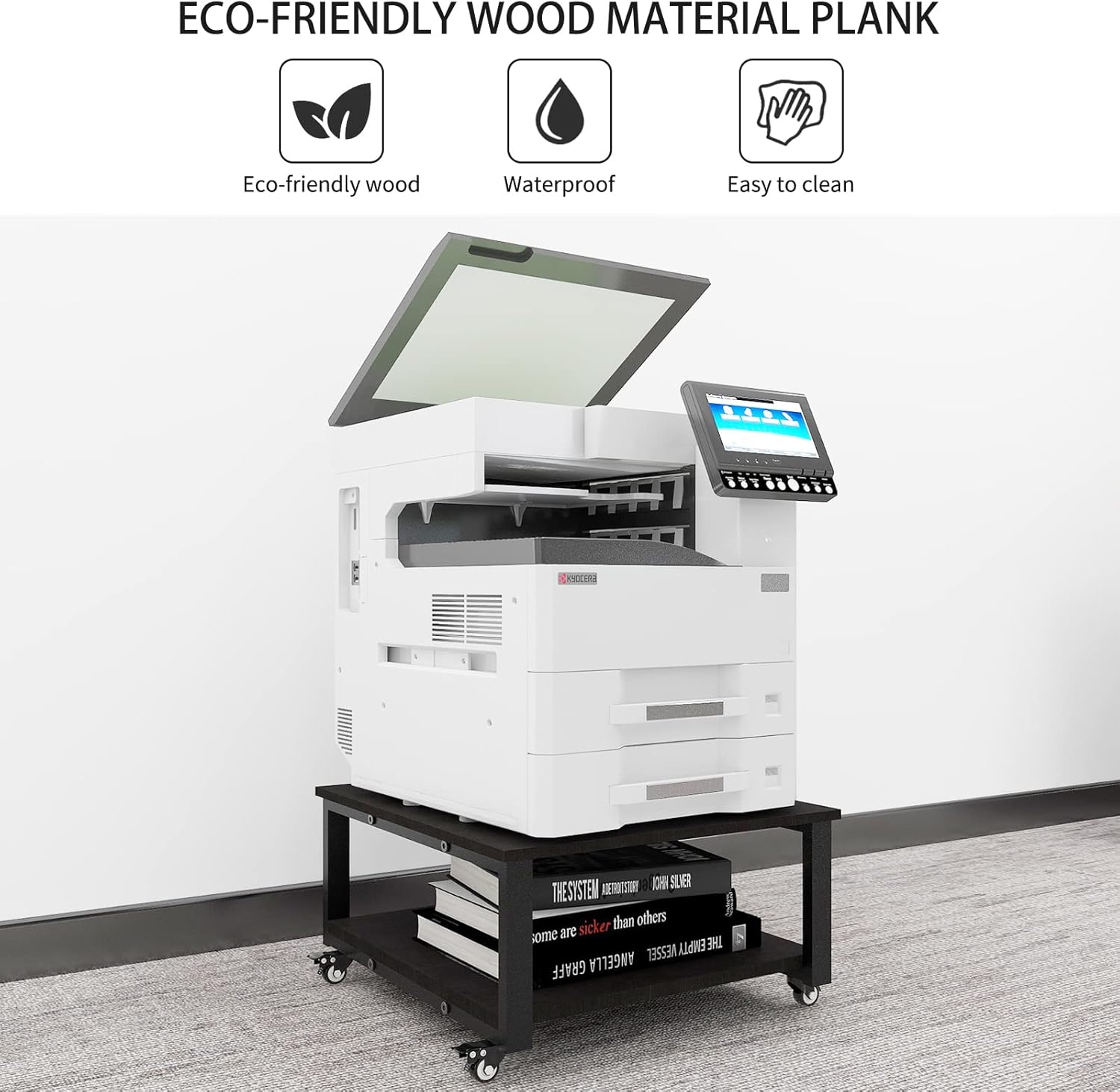 - 【Portable & Movable】The printer has 4 lockable industrial wheels, push to lock and pull to unlock the wheels, it can be easily moved to any place, perfect for large and heavy duty printers, u can lock the wheels to hold it in place when no need to move it.