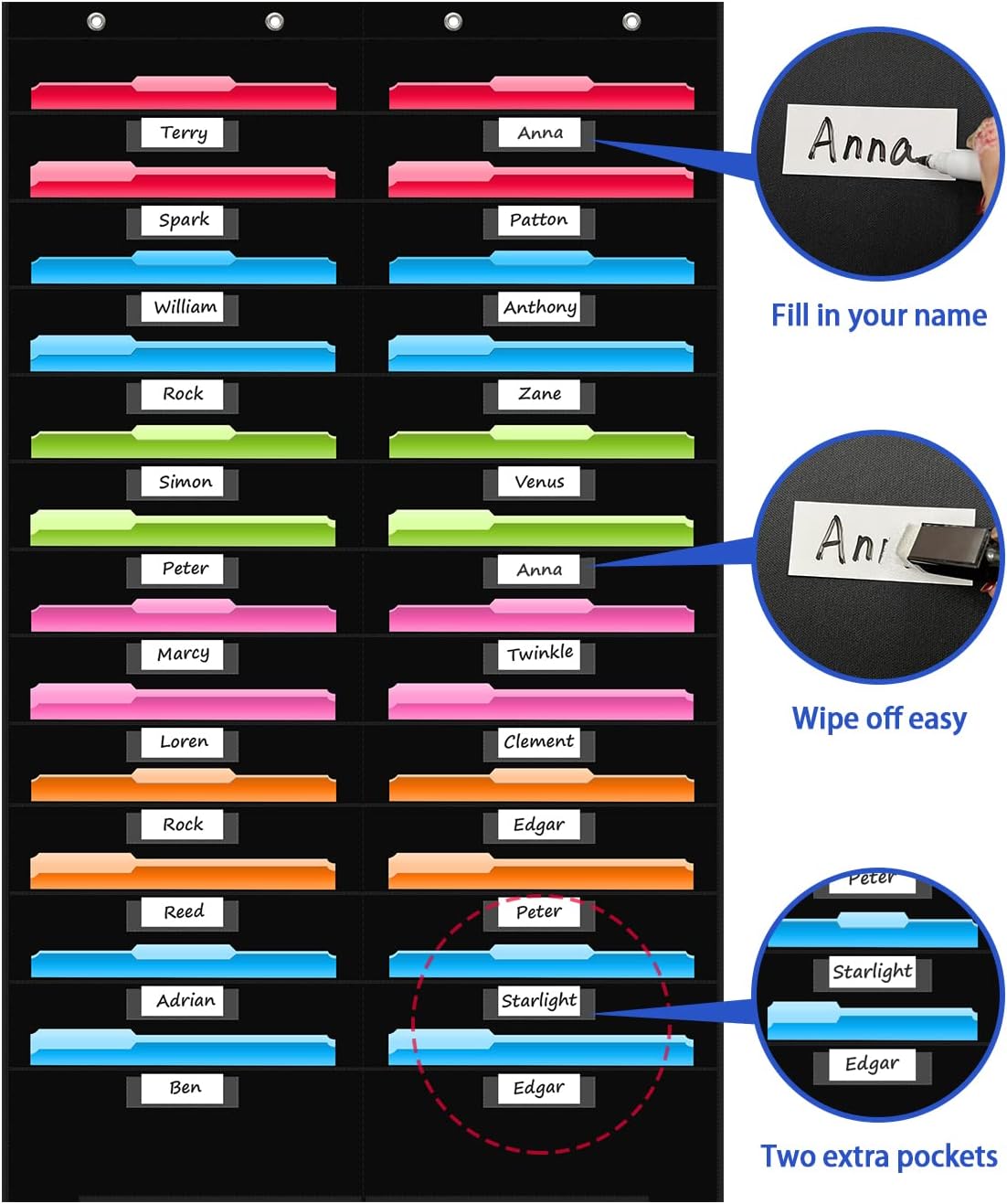 - ✿【You Will Get】Including 1piece of hanging file pocket chart with 24 pockets, 24 pcs of dry-erase white name labels, 4 pieces of door hooks and 2 pieces of black marker pens.