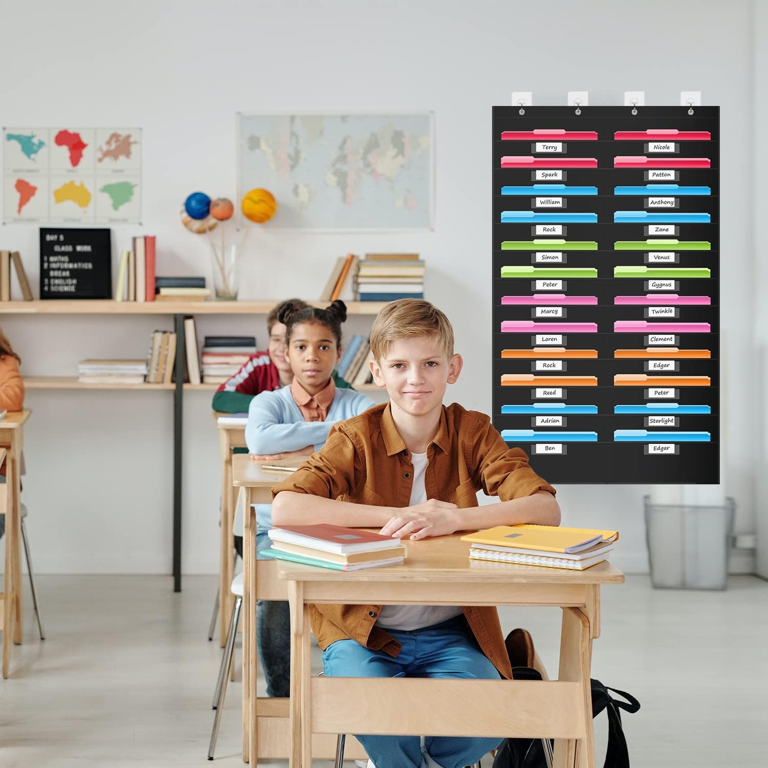 REGELETO 24 Pocket Storage Chart with Nametag Pockets, Hanging Wall File Organizer for Classroom and Office, Black