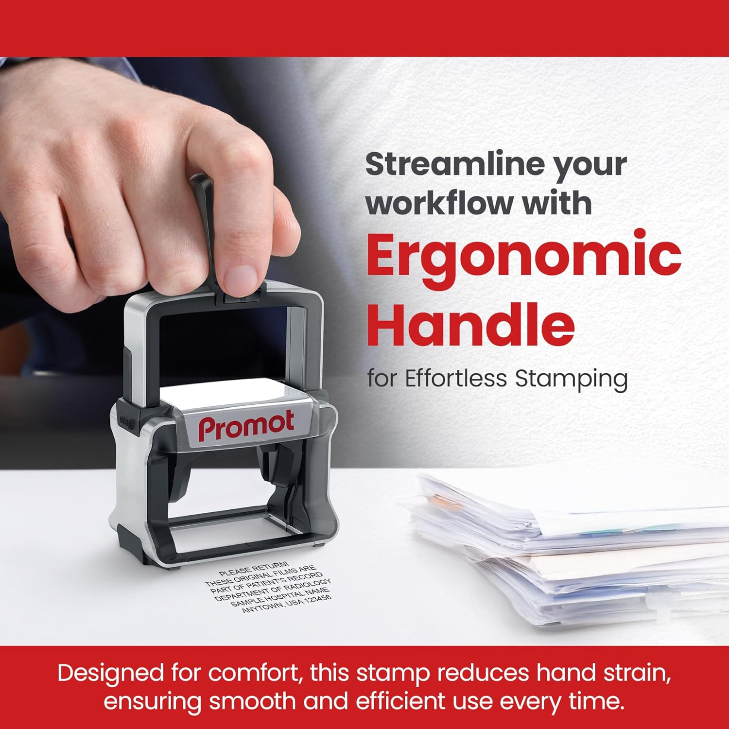 - Multiple Sizes – Available in small (1"x1-5/8"), medium (1"x2-1/4"), and large (1"x2-3/4") impressions for mailing stamps, labels, and branding.