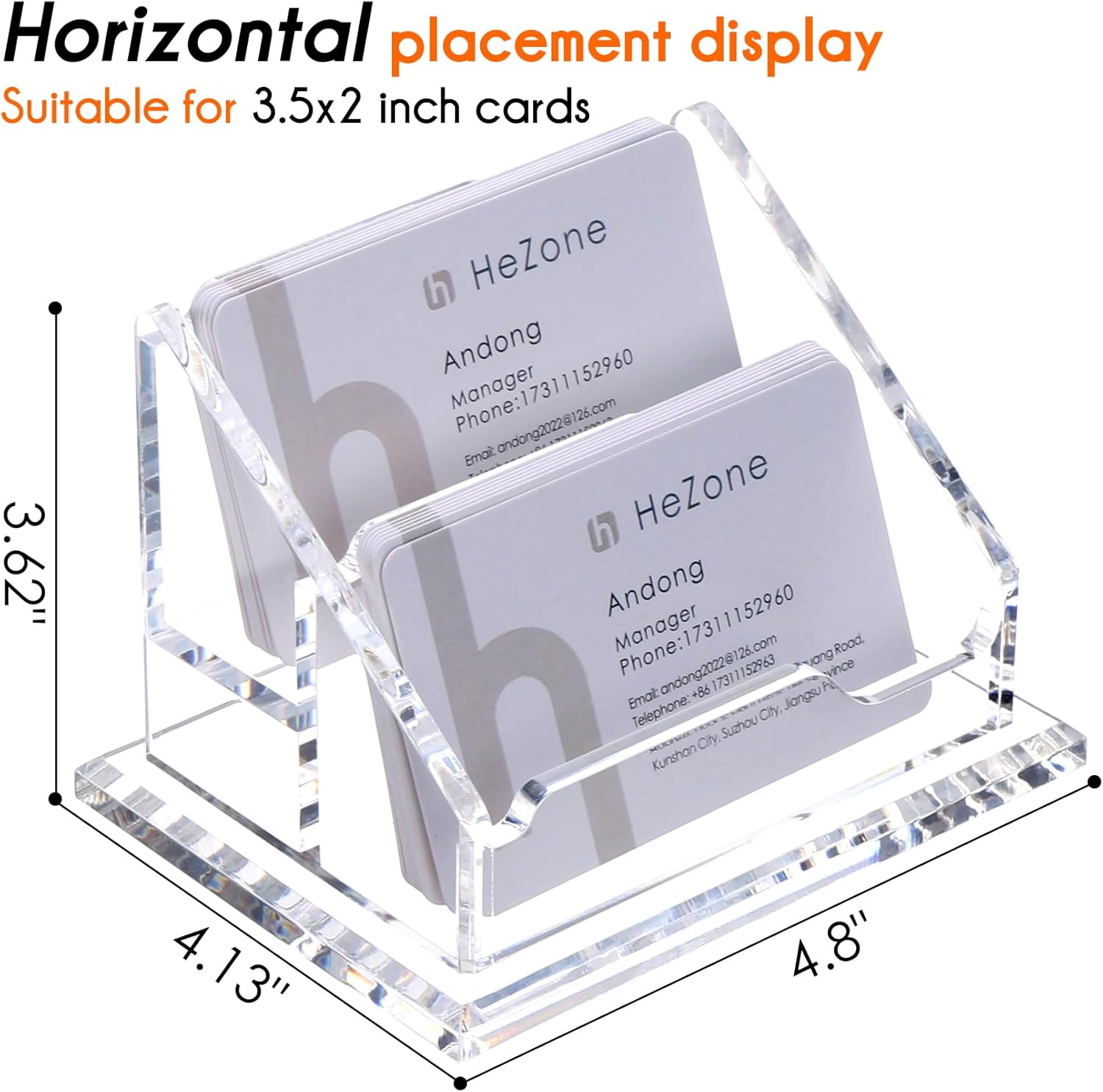 - 【DOUBLE BUSINESS CARD HOLDER】:The open design of the 2 tier business card holders make it easy for customers to get your business cards, which considerably increases the possibility for cooperation.The clear acrylic business card holder can plainly show your enterprise information,better promote the company's products or services, and leave a deep first impression on partnership partner, so as to begin the process of collaboration.