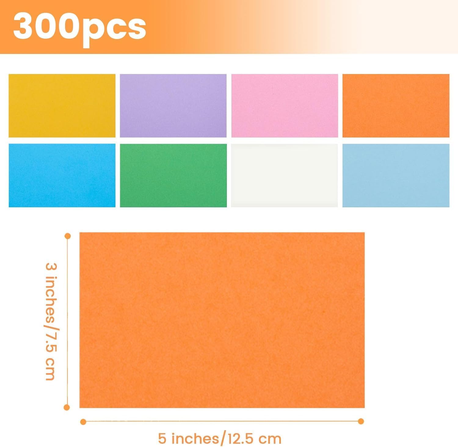 - What Youβll Get: You will receive 300 index cards bulk in 8 vibrant colors, measuring 3 x 5 inches. Perfect for school, office, or home use