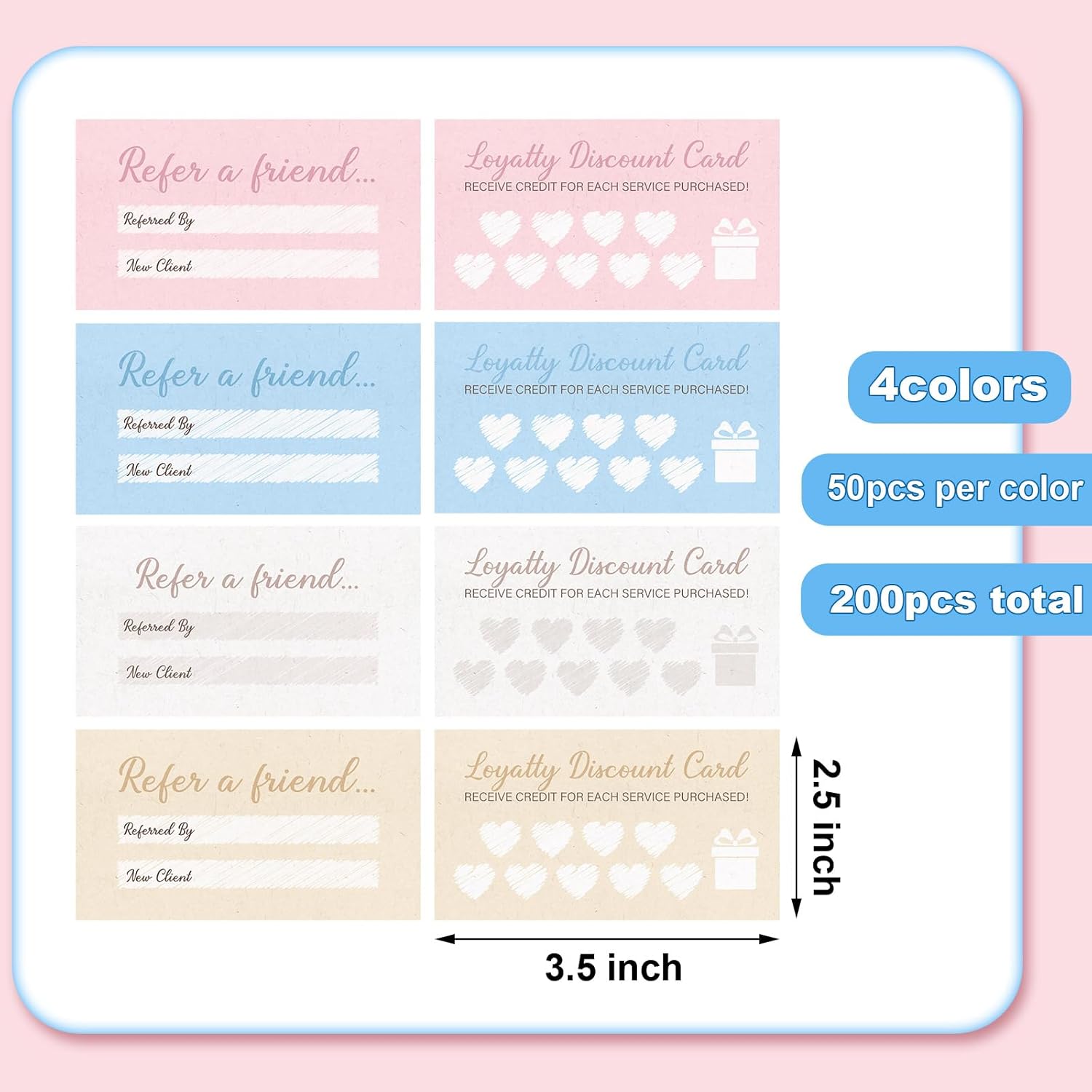 Seajan 200 Pcs Referral and Loyalty Discount Card 3.5 x 2 Inch Punch Cards, Double Sided Loyalty Cards for Small Business Reward Awards for Behavior, 4 Style