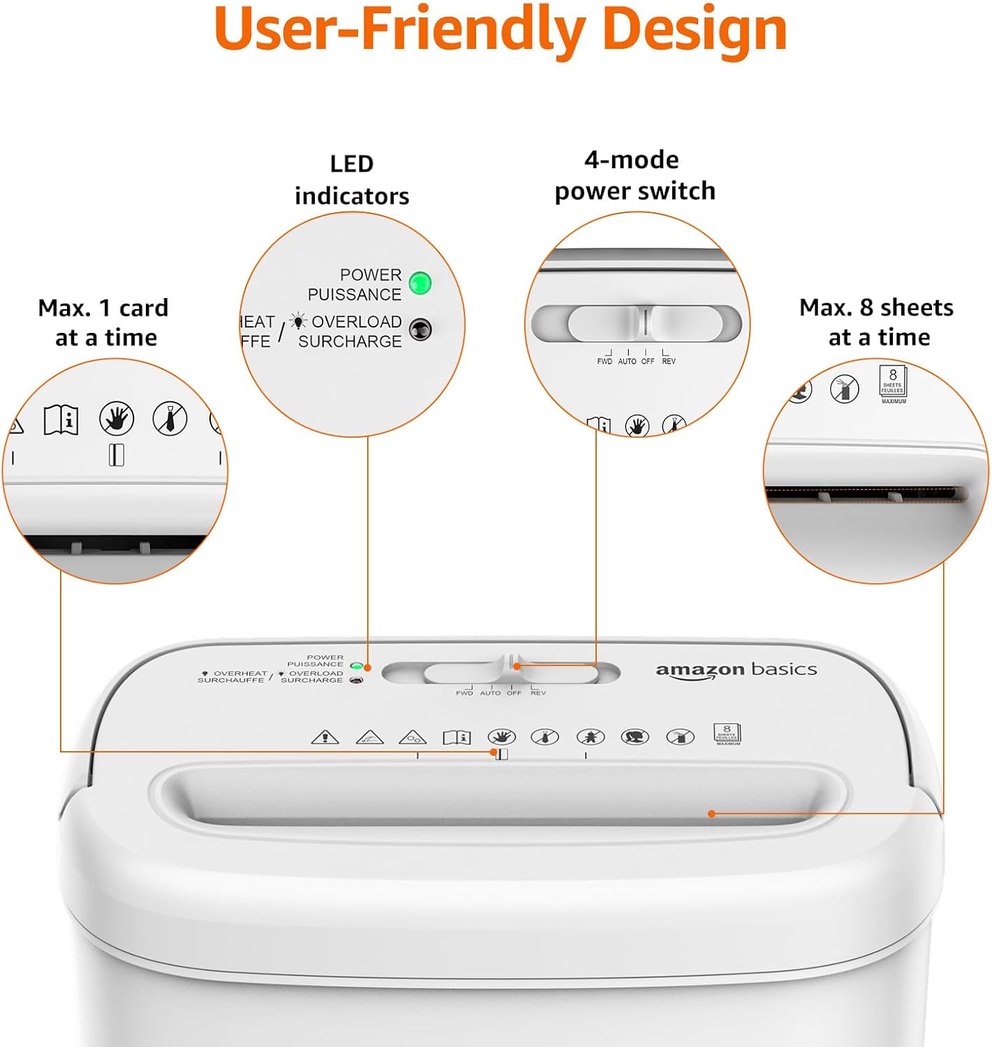 Amazon Basics Cross Cut Paper and Credit Card Shredder for Security - 8-Sheet, Heavy Duty, White