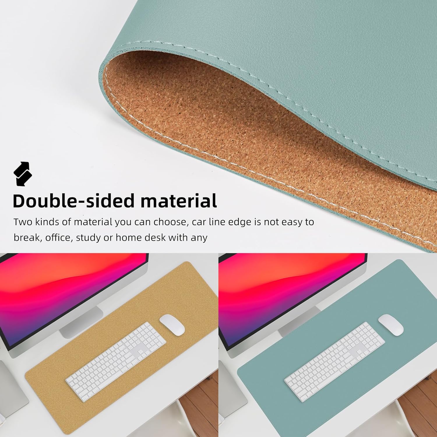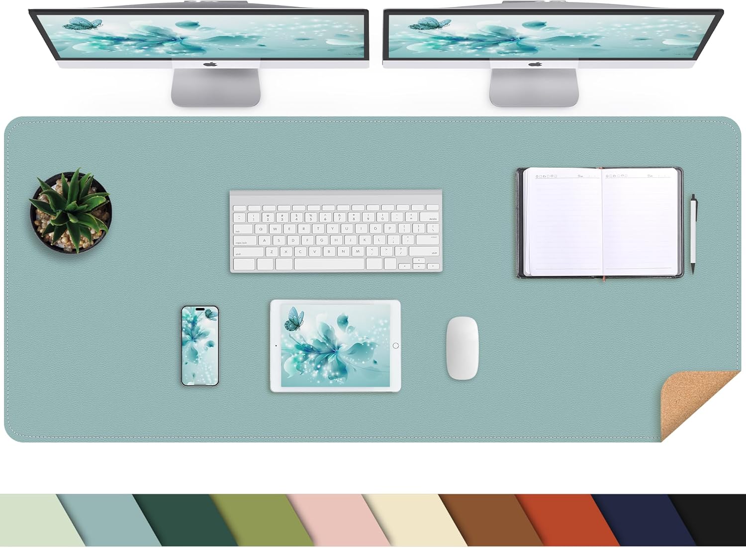 Leather Desk pad Protector,47 * 17in Large Desk mat with Natural Cork & PU Leather,Mouse pad,Non-Slip Office Desk Mat,Waterproof Desk Writing Pad for Office and Home (Light Blue)