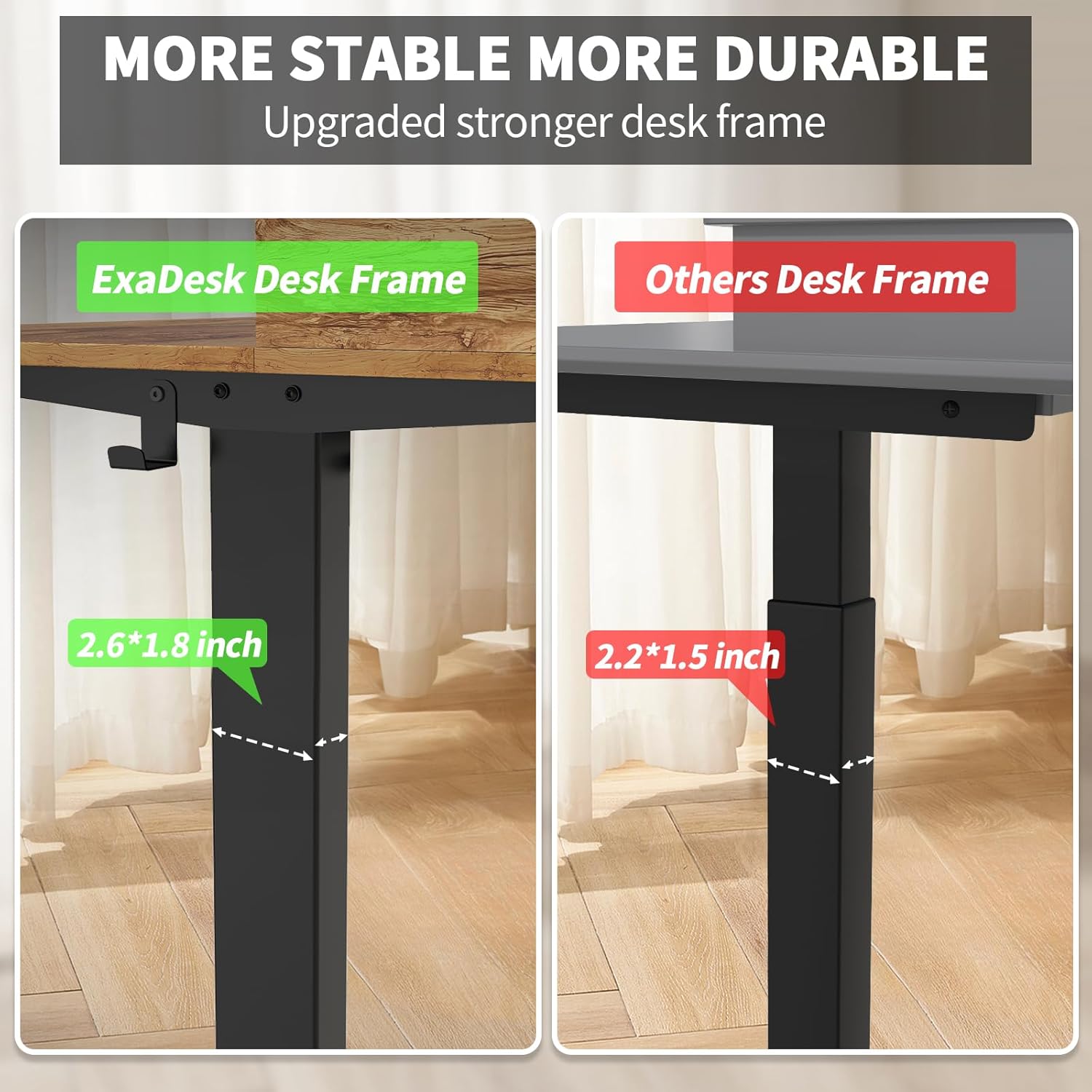 - β¨Customize Cozy Sit Stand Desk Height: ExaDesk electric standing desk adjustable height range is 27.5"~46.5" also suitable for tall people. 3 Preset buttons, M Button, and Up and down Buttons on the control panel, help you preset cozy sitting and standing desk heights easily. ExaDesk electric standing desk, One-click smoothly can switch to your favorite sit stand up desk height.