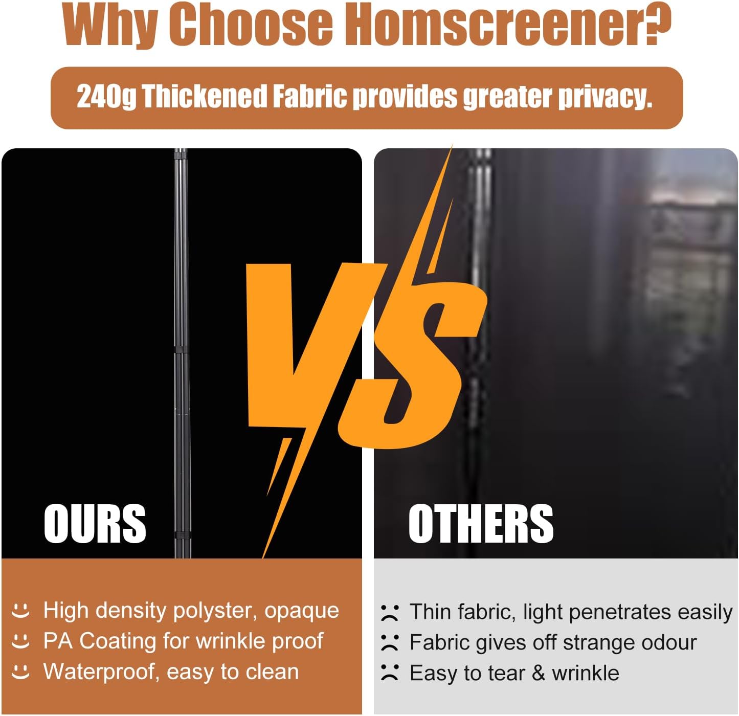- Upgraded & Long service life: The room divider frame is made from Ο20mm steel tubes with frosted coating to resist corrosion and rust. The 240gsm thicker cloth provides superior concealment and is impervious to light. The PA coating makes the polyster fabric wrinkle-proof and tear-proof. The upgraded room divider is easy to clean, just wipe gently with a cloth