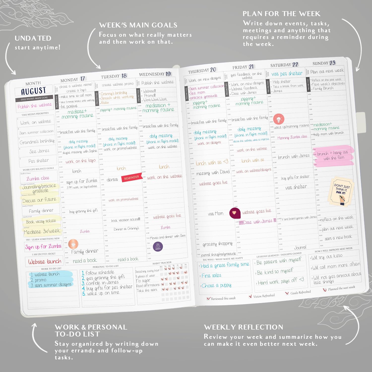 - THE ULTIMATE UNDATED, LARGE-FORMAT PLANNER β This large-format, undated planner combines effective planning tools and goal-setting frameworks to help you stay focused and productive throughout the year.