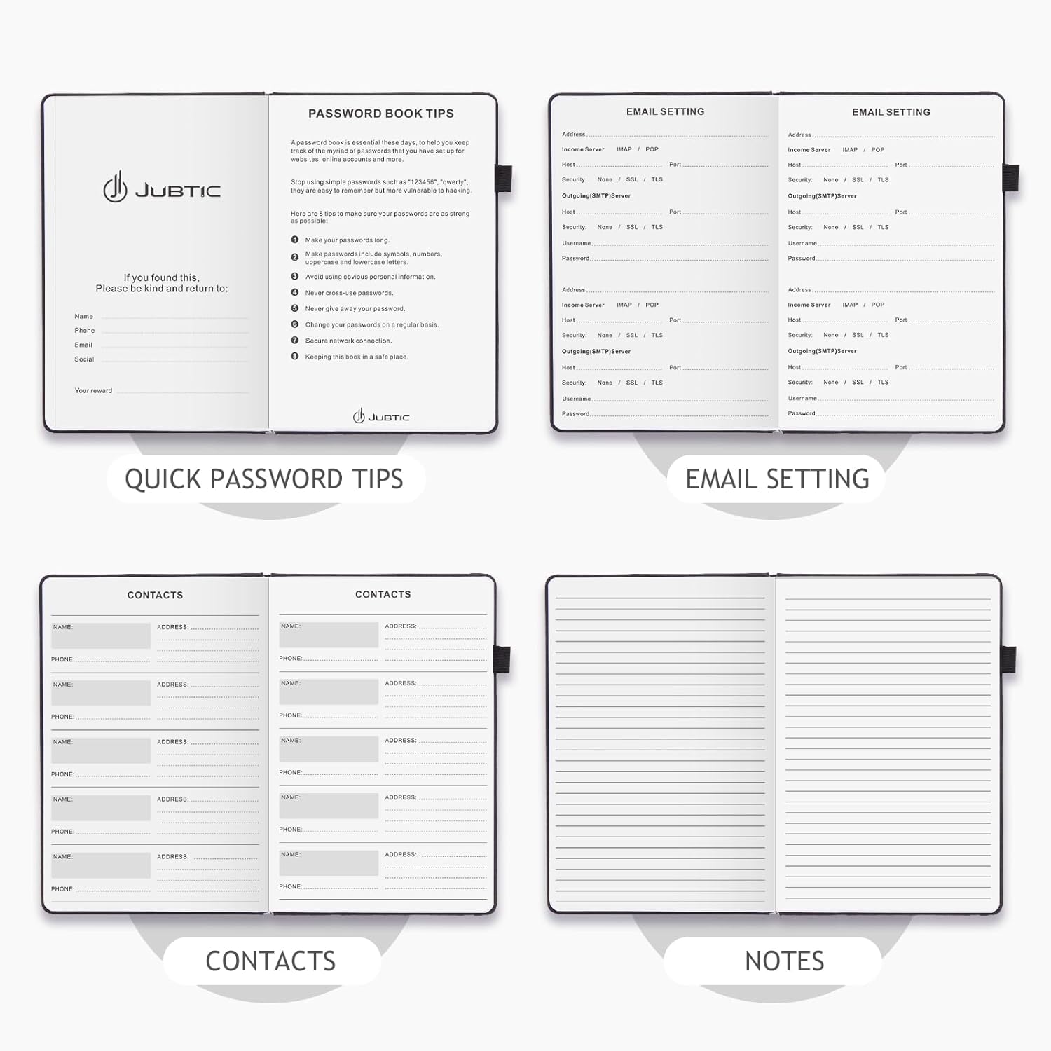 JUBTIC Password Book with Individual Alphabetical Tabs, 7"x10" Internet Password Keeper Book for Seniors, Password Notebook and Organizer/Notes Section, Black
