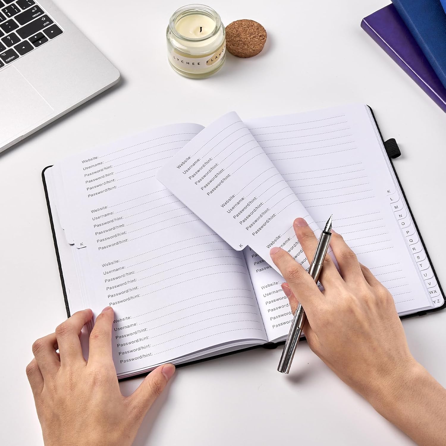 - Convenient password management with ample space: Unlike other password books, we have upgraded to individual letter indexing, providing ample space for recording passwords. Each letter has 6 pages with 4 entries per page. It enables easy recording and retrieval of various important login information, providing convenience for your password management.