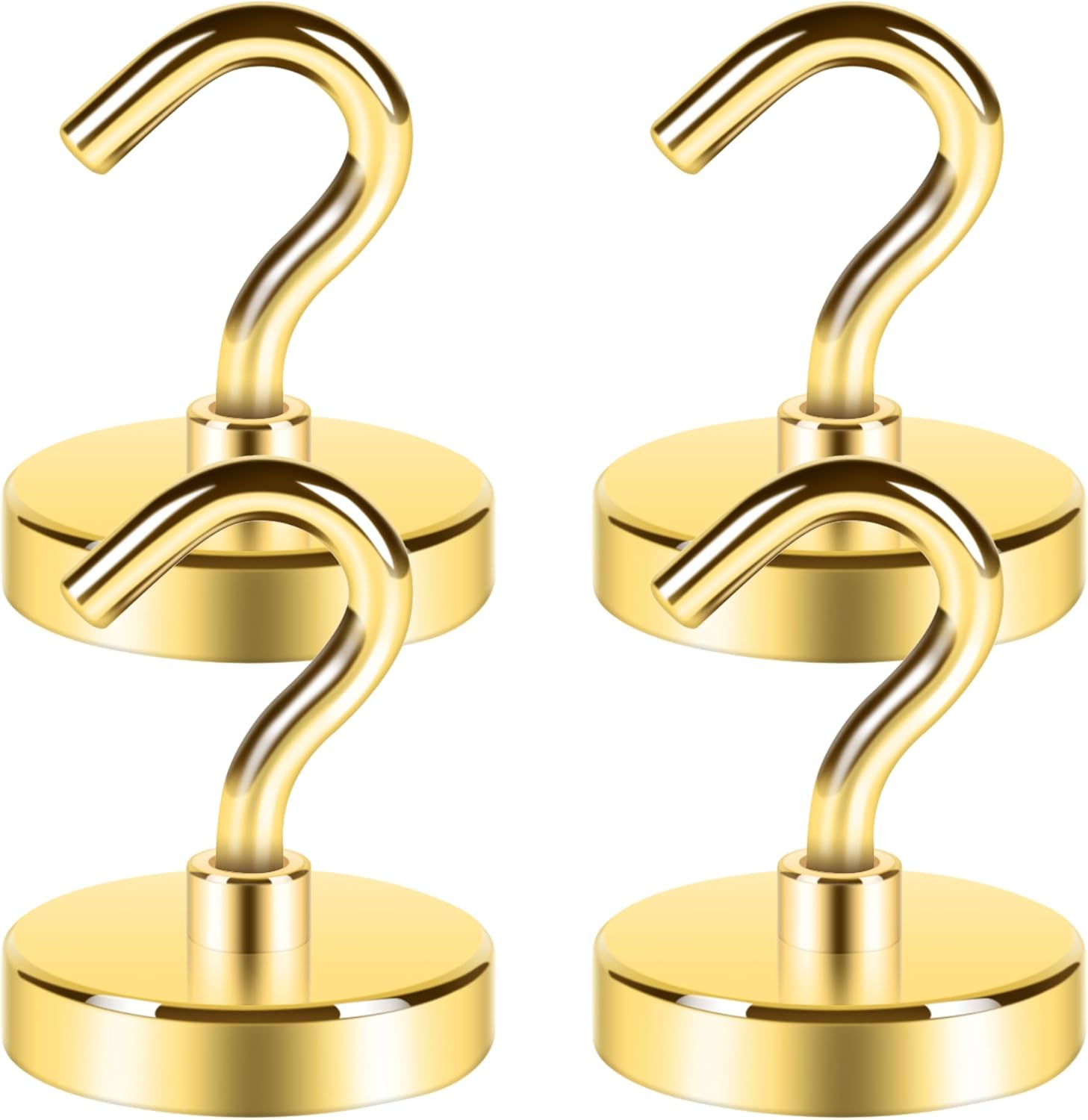 Neosmuk Magnetic Hooks Heavy Duty, Strong Magnet with Hook for Fridge, Super Neodymium Extra Strength Industrial Hooks for Hanging, Magnetic Hanger for Toolbox, Cruise, Grill(Golden,4 Pack)