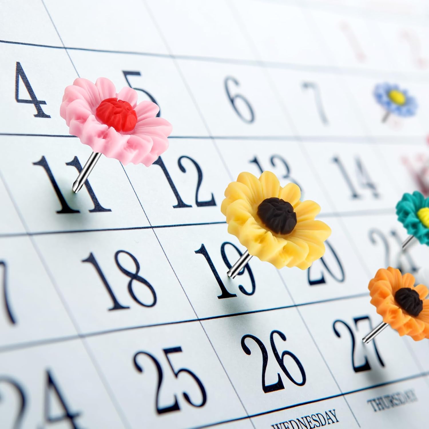40Pcs Push Pins, Thumb Tacks for Bulletin Board, Flower Decorative Pins and Tacks, Cork Board Thumbtacks, Cute Thumbtack for Office Decorative