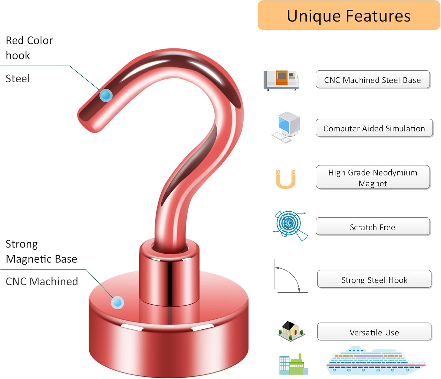 - ✔ VERSATILE USE- Neosmuk’s strong neodymium magnetic hooks were endowed with a strong capability for holding various items wherever there is iron or steel. This magnet hook is a perfect magnetic key holder. You can also hang your tools next to the toolbox with this magnetic hook. Our magnetic hooks are great for grill, pot, cup, utensils, and oven.