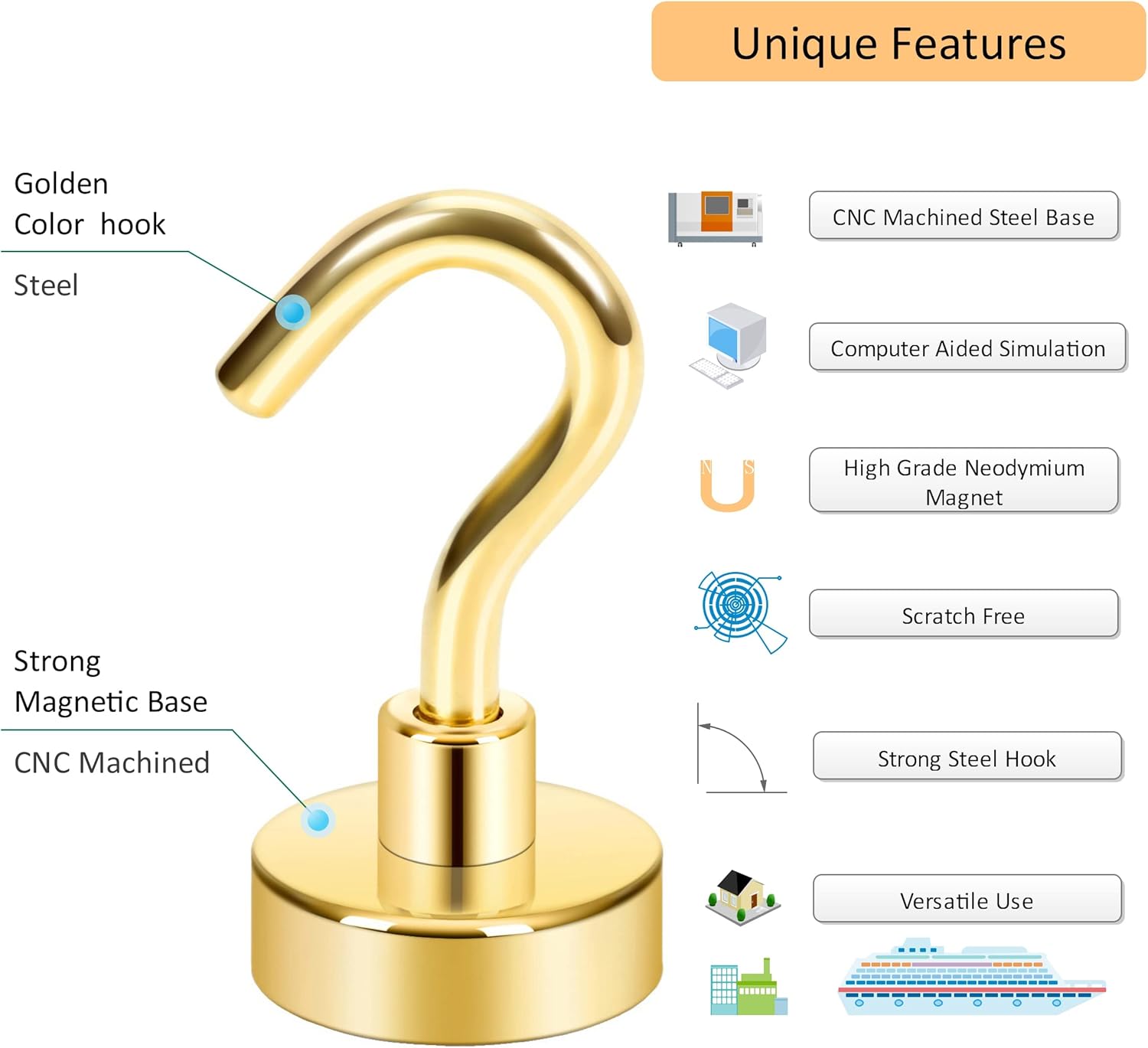 - ✔ HIGH-LEVEL PLATING- We offer 4 layers of coating on the magnet hook metal base, metal hook, and magnet. It provides this magnetic hanger with a shiny, rust-free, and mirror-like finish. Coated magnetic hook particularly exhibits an excellent anti-corrosive properties and scratch resistance. Maintenance-free, no rust!