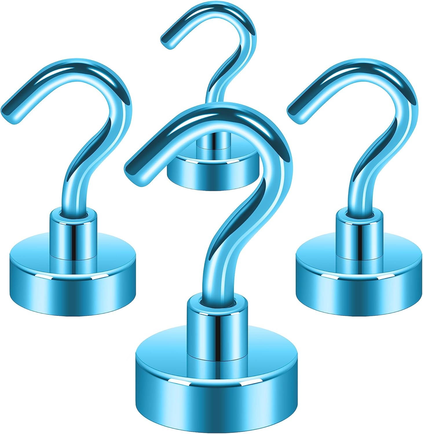 Neosmuk RoyalBlue Magnetic Hooks,30lb Heavy Duty Earth Magnets with Hook for Refrigerator, Extra Strong Cruise Hook for Hanging, Magnetic Hanger for Curtain, Grill (RoyalBlue, 4 Pack)