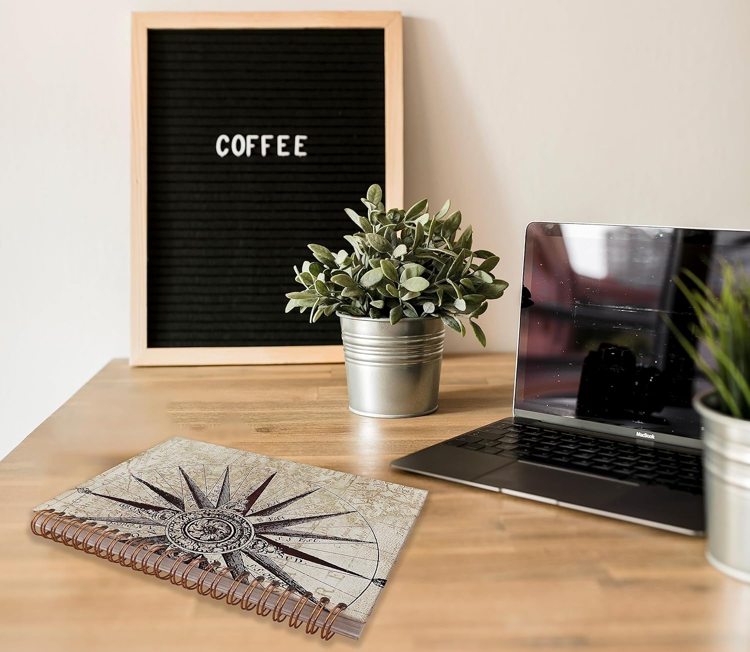 Vintage Map Compass Lined Spiral Journal Notebook 8.3×5.5 Inches Hardcover College Ruled Notebook Journal for Work Note Taking Journaling,Gifts for Ocean Lovers,Sailor Gift