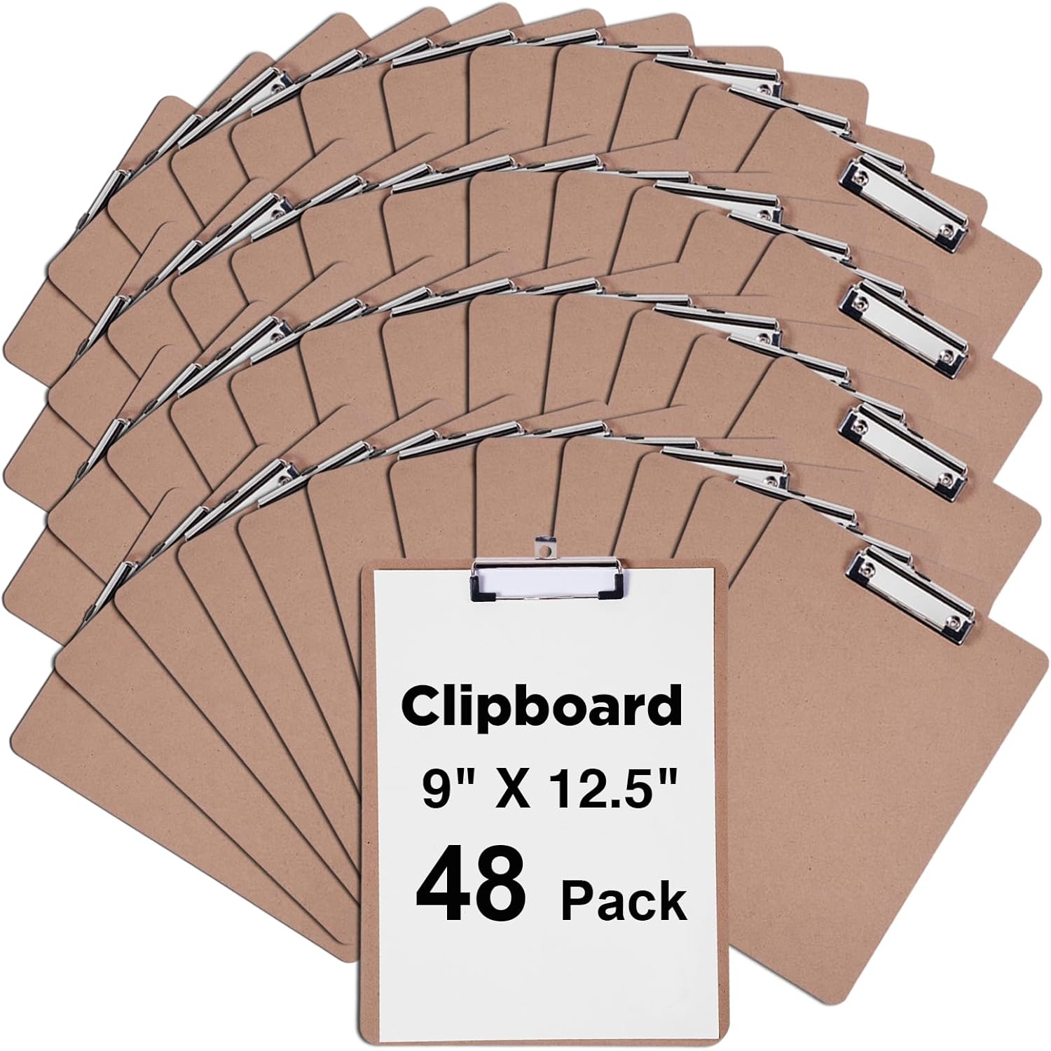 Clipboards Bulk, Woswel Hardboard Office Clipboards 48 Pack,9 X 12.5 Inch Recycled Wood Clip Boards,Low Profile Clip Boards for Home School & Office Supplies